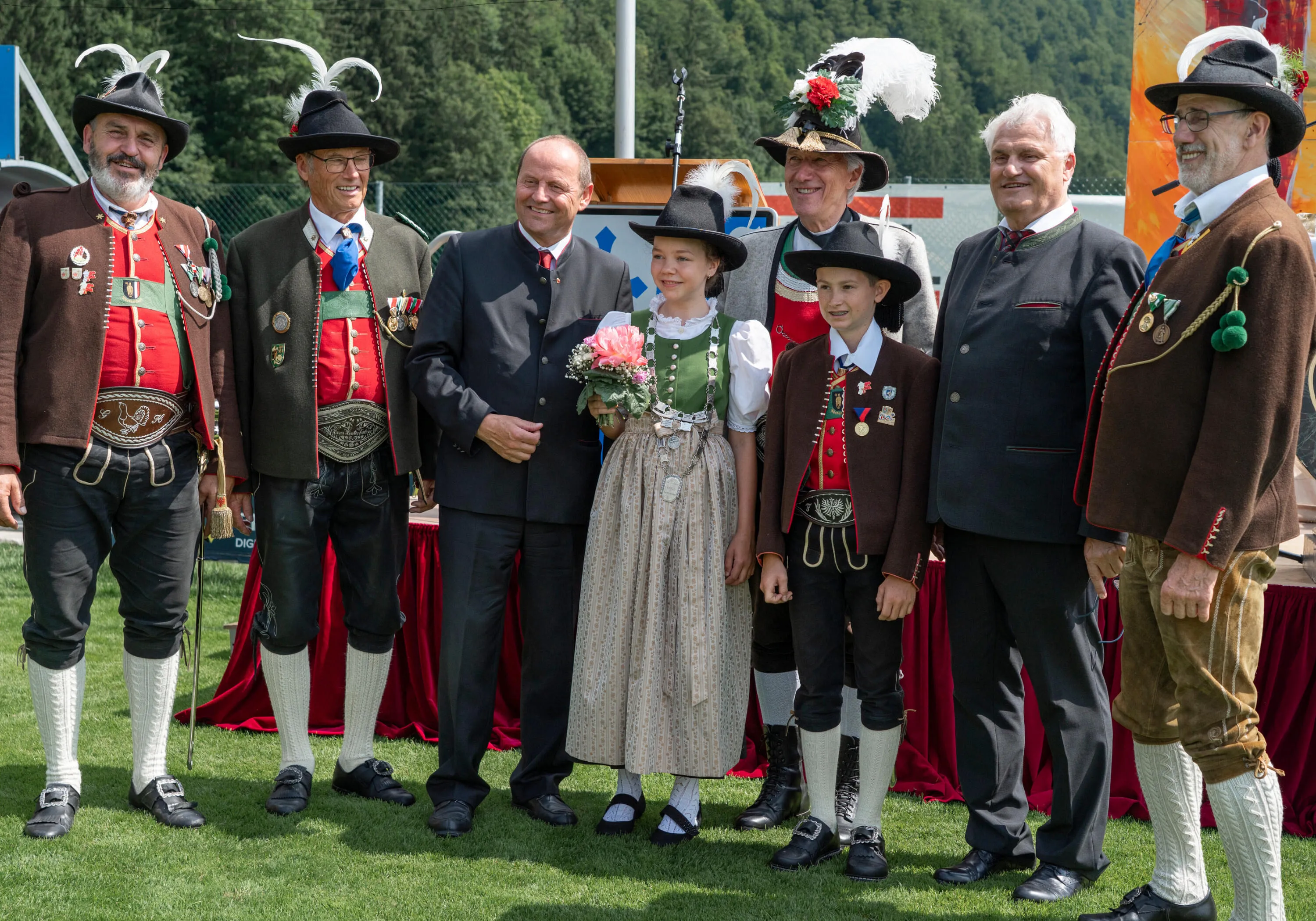 Die intensiven Vorbereitungsarbeiten haben sich gelohnt – am Wochenende ging in Kirchdorf der Höhepunkt des Jubiläumsjahres „900 Jahre Kirchdorf“ über die Bühne. Aus diesem Anlass war es für die Kirchdorfer Schützen Ehren-sache, dass sie heuer als Ausrichter des Bataillonsfestes fungierten. Auftakt des Festreigen war am Freitagabend die Gemeinschaftsaufführung des Ton-gemäldes „Traum eines österr. Reservisten“ von Carl Michael Zierer. Die Musikkapellen Kirchdorf und Erpfendorf sowie als Ehrenkompanie, die Johann Jabob Stainer Schützenkompanie Waidring, mit allen Fahnenabordnungen des Bataillons konnten das Publikum begeistern und die Aufführung zu einem unvergessenen musikalischen Erlebnis machen.