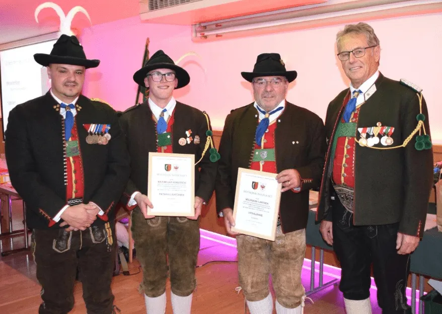 Hauptmann Oliver Wieser konnte viele Ehrengäste und zahlreich erschienene Mitglieder begrüßen. Ein Aktives Schützenjahr mit tratitionellen Ausrückungen, gelungenen Ehrensalven und gesellschaftlichen Verpflichtungen geht für die Feller Schützen zu Ende. Die aktuelle Standesmeldung weist 78 Aktive Mitglieder vier Ehrenmitglieder, fünf Offiziere, zehn Marketenderinnen und sechs Jungschützen sowie ein Blumenmädchen aus. Weiters unterstützen 158 inktive Mitglieder die Kompanie. Unter den Ausrückungen in geschlossener Form ist die Teilnahme beim Schützenfest in Ischgl als Ehrenkompanie sowie beim Btaillonsfest in Kirchdorf hervorzuheben. Neben zahlreichen Fahnenabordnungen prägten weitere Tätigkeiten wie Exerzieren, der Auf- und Abbau der Krippe, die Ostergrabwache, die Betreuung der Einsiedelei, das Entzünden der Herz-Jesu-Feuer oder der Schützenmarsch nach St. Johann im Ahrntal. Highlight waren heuer das Jaggas´n Fest und der Schnapsverkauf bei Knödeltisch. Im Rahmen der Versammlung wurden die Marketenderinnen Theresa Bachler und Christiane Schlögl angelobt. Maxi Kowatsch wurde zum Patrollführer und Wolfgang Larcher zum Unterjäger befördert. Georg Fuchs wurde die Haspinger Medaille nachgereicht.